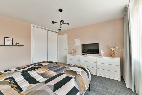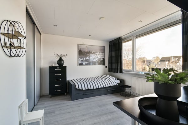 De overloop biedt toegang tot 3 slaapkamers, de badkamer en de trapopgang. De ouderslaapkamer is gelegen aan de tuinzijde en uitgerust met een vaste kast en een elektrisch screen voor de raampartij. De tweede slaapkamer is gelegen aan de voorzijde en biedt een leuke kijk op de voorgelegen singel. Deze kamer beschikt eveneens over een elektrisch screen en een vaste kast. De derde slaapkamer is gelegen aan de achterzijde. Ook hier is het raam voorzien van een elektrisch screen. De luxe uitgevoerde badkamer is in 2022 vernieuwd en is uitgerust met een 2de toilet, een heerlijke inloopdouche, een designradiator en een wastafel met mooi bijpassend meubel.