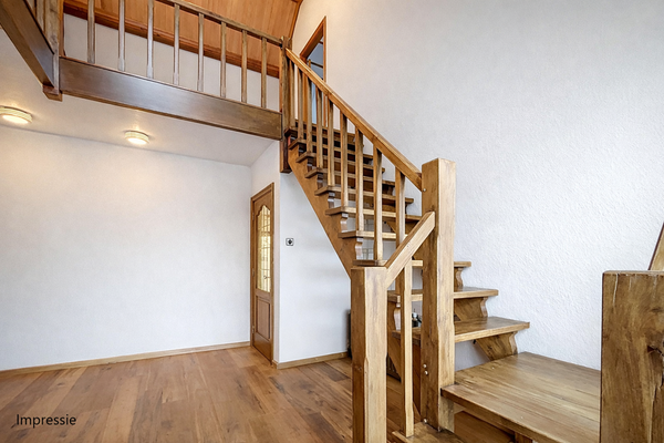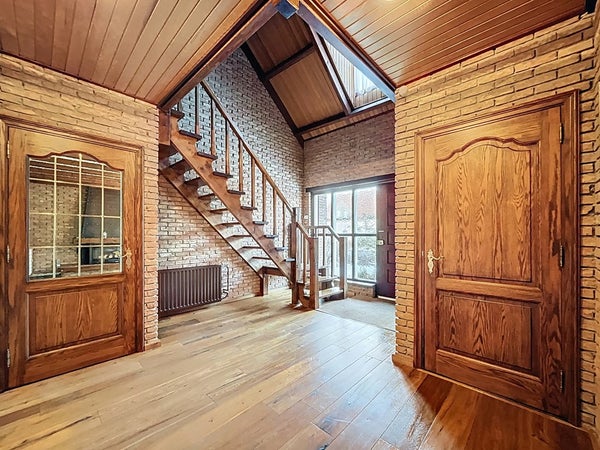 Via de royale entreehal ervaart u direct de kwaliteit van deze woning. Deze inkom is misschien zelfs het pronkstuk van de woning te noemen. De massief eiken vloer, de fraaie trap en het hoge plafond zorgen voor een ruimtelijk en licht geheel. Vanuit de hal heeft u toegang tot het toilet, de meterkast, de trapopgang, het leefgedeelte, de badkamer en een slaapkamer op de begane grond.