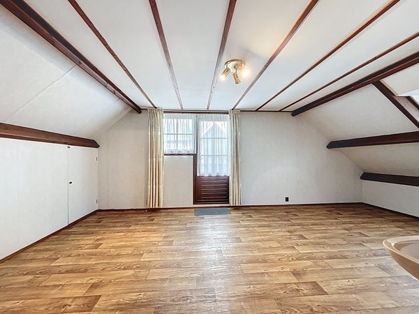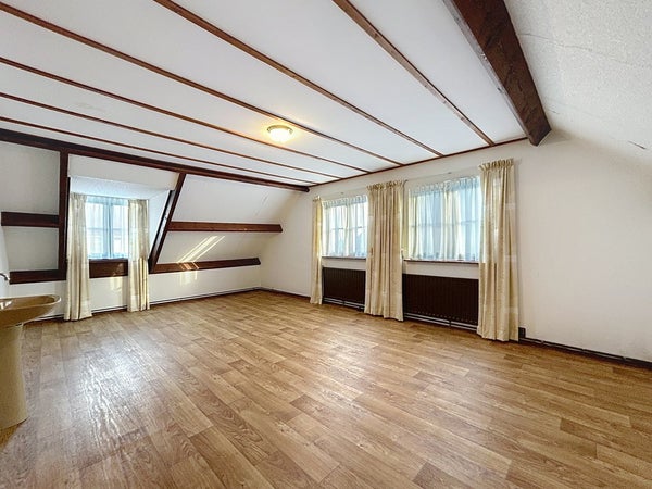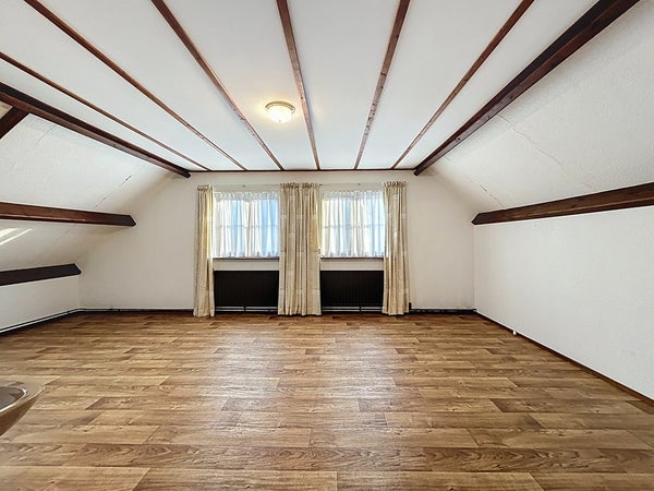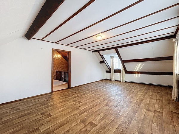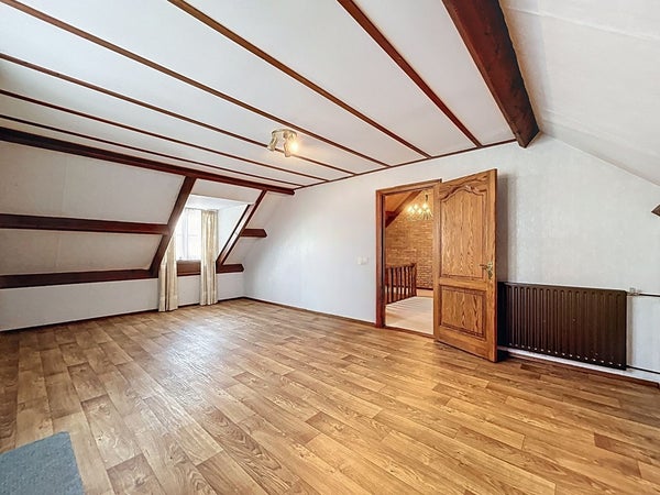 De woonkamer ademt rust en comfort dankzij de karakteristieke elementen, prettige lichtinval en vele raampartijen. Er is volop ruimte voor een gezellige zithoek, compleet met gaskachel, airconditioning en radiatoren. Aansluitend bevindt zich het eetgedeelte met ruimte voor een grote eettafel en directe toegang tot de achtertuin via de schuifpui. Een leuke toevoeging is de aparte loungehoek, welke tevens te gebruiken is als hobbyruimte of speelhoek voor de kinderen. Prachtig is hier ook de parketvloer die uitstekend past bij de uitstraling van de woning.
