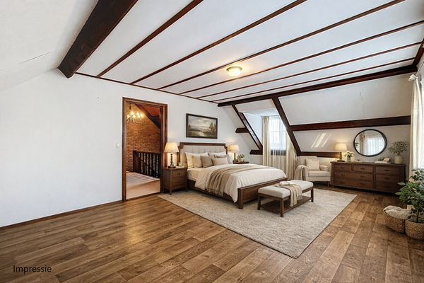 De trap leidt naar de prachtige ruime overloop met houten afwerking en zicht over de entree. Vanaf hier heeft u toegang tot twee zeer royale slaapkamers, beide voorzien van een wastafel en verder alle ruimte voor een tweepersoonsbed en kledingkast. De overloop biedt bovendien mogelijkheden voor het realiseren van een extra slaapkamer en/of badkamer.