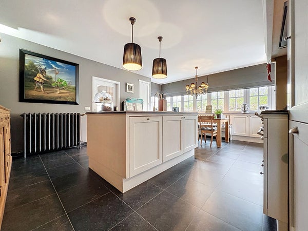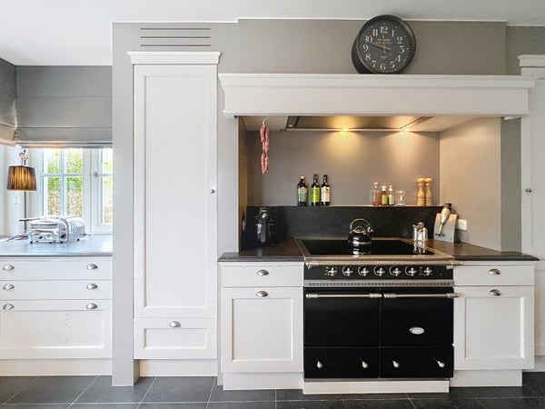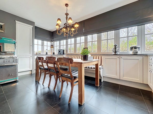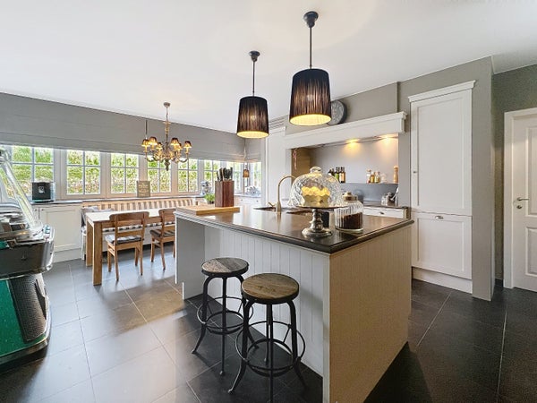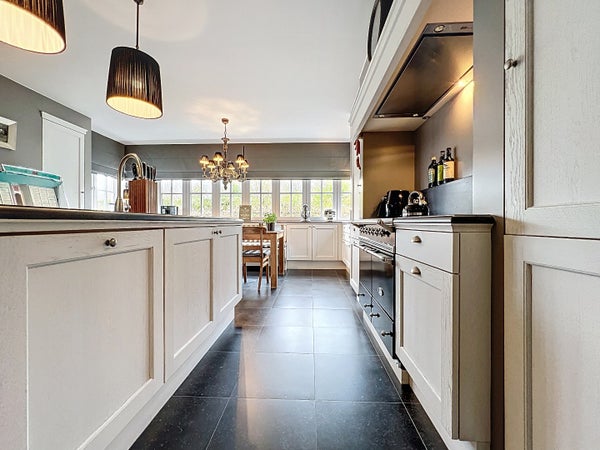 Het ruime kookeiland met natuurstenen werkblad en dubbele pompsteen nodigt uit tot lange, liefdevolle avonden vol samenzijn waar wordt gekookt, geproefd en gelachen tot laat. Het statige Lacanche inductiefornuis met twee ovens is een pronkstuk en verheft iedere maaltijd tot een kleine culinaire viering. Uiteraard is de keuken compleet met een vaatwasser en koel-vriescombinatie, zodat comfort en elegantie hier hand in hand gaan.