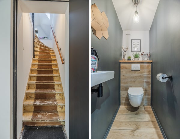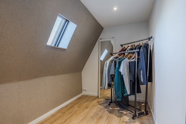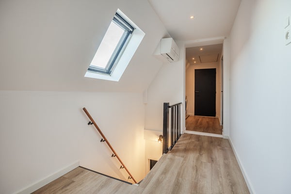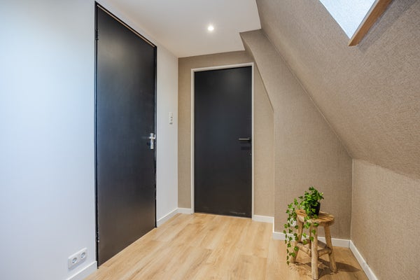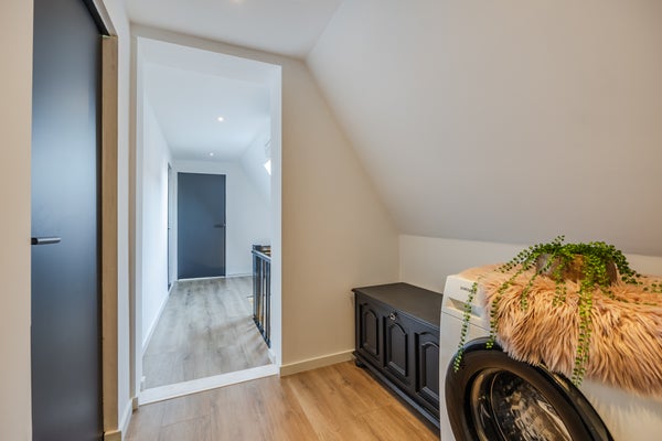 Bij binnenkomst via de hal vindt u een ruime woonkamer met eet- en zitgedeelte, waar veel natuurlijk licht binnenkomt. De leefkeuken beschikt over moderne apparatuur, en u heeft toegang tot de achtertuin. Op de eerste verdieping zijn vier slaapkamers, inclusief een hoofdslaapkamer met trap naar een extra verdieping. In de badkamer vindt u een ligbad en regendouche.