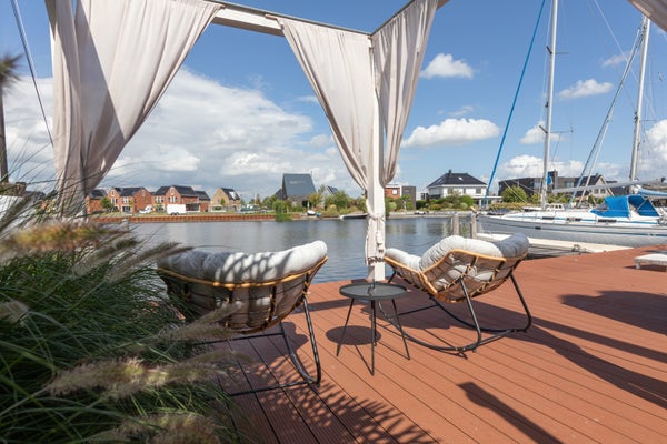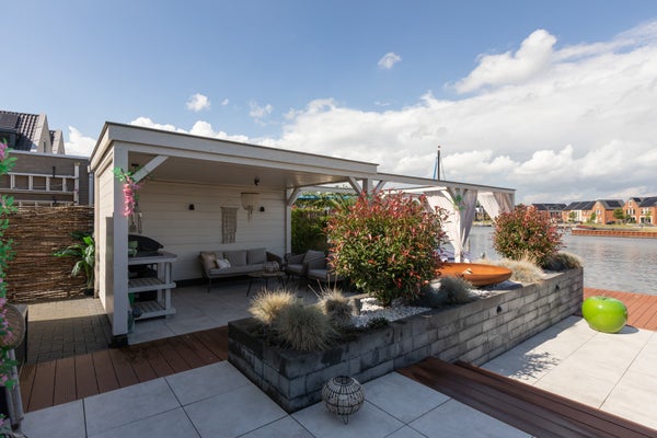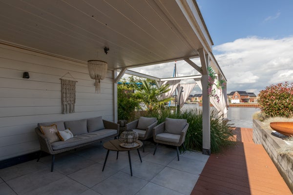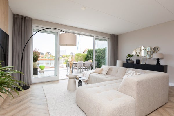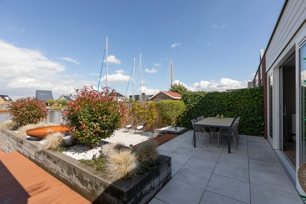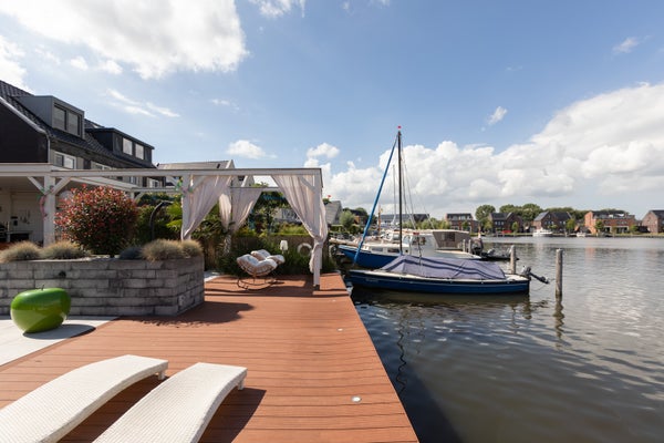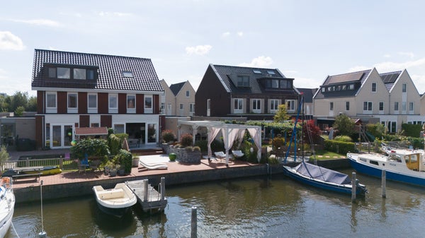 Aan open vaarwater in de nieuwbouwwijk de Houkepoort staat deze ruime 2/1-kapwoning uit 2019 met een garage, nu in gebruik als praktijkruimte, en een tuin van ca. 12 meter diep met een ligplaats voor boten. Deze moderne woning, met 172m2 woonoppervlak, beschikt over drie slaapkamers en biedt de mogelijkheid voor uitbreidingen op de tweede verdieping. De indeling omvat een lichte living van ca. 42m2, een luxe keuken met inbouwapparatuur, en een grote badkamer van ca. 8m2. De woning is goed geïsoleerd, heeft energielabel A en is voorzien van 20 zonnepanelen. De garage van ca. 6x3 meter bevat een praktijkruimte en berging. Dit is een luxe en comfortabele woning met energiebesparende voorzieningen, perfect voor liefhebbers van water en ruimte.