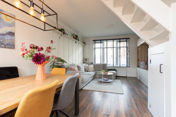 Deze markante eindwoning uit 1910 ligt dicht bij het stadscentrum. De woning beschikt over een aanzienlijke aanbouw met een moderne keuken en vernieuwde badkamer en heeft een ruime schuur van 11m². De zonnige stadstuin, gericht op het zuidwesten, is bereikbaar via tuindeuren vanuit de woonkamer. De woonkamer is ongeveer 32m² groot en heeft veel lichtinval, met openslaande deuren naar de tuin. Op de eerste verdieping zijn twee ruime slaapkamers van respectievelijk 12m² en 7m², met een inloopkast en wasruimte. De badkamer en het toilet zijn in 2021 vernieuwd. De woning is energiezuinig met HR-beglazing en een cv-ketel uit 2007. Met een perceelgrootte van 90m² en een woonoppervlakte van 83m² is dit een ideale starterwoning.