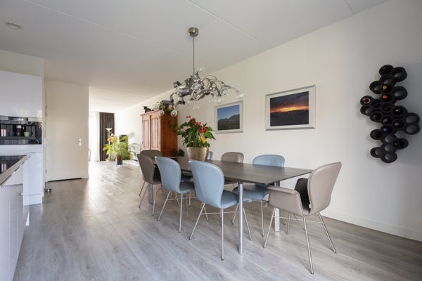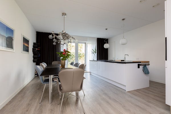 Deze ruime 2/1-kapwoning, opgeleverd in 2020, heeft een uitbouw van 2.40m op de begane grond en beschikt over een garage en een eigen ligplaats voor de deur. Gelegen in de nieuwbouwwijk Houkepoort met vrij uitzicht over groen en water, biedt deze instapklare woning vijf slaapkamers, modern sanitair en een uitgebreide open keuken met kookeiland. Met 161m2 woonoppervlak en hoogwaardige isolatie heeft de woning een energielabel A+ en 7 zonnepanelen. De garage is 5.70x2.80m met een elektrische deur. De lichte L-vormige doorzonkamer van 49m2 loopt door naar de zonnige achtertuin. Op de eerste verdieping zijn twee grote slaapkamers en een moderne badkamer. De tweede verdieping biedt extra slaapkamers en wasruimte. Dit huis combineert comfort met een prachtig uitzicht aan het water.