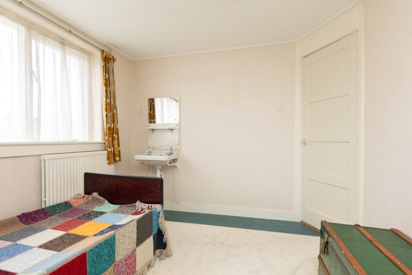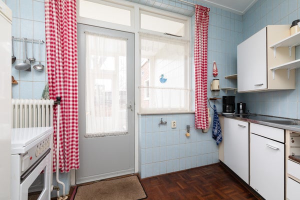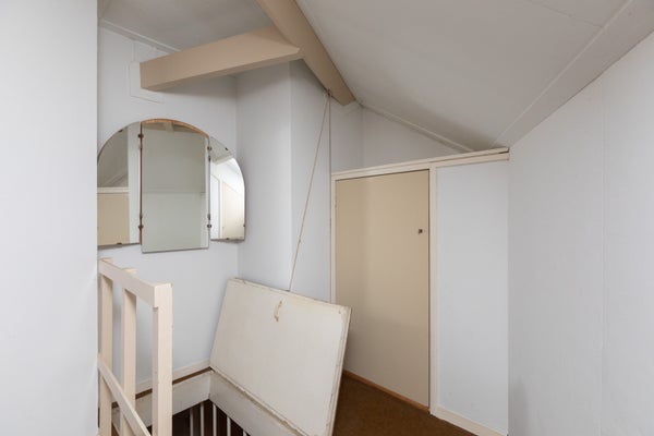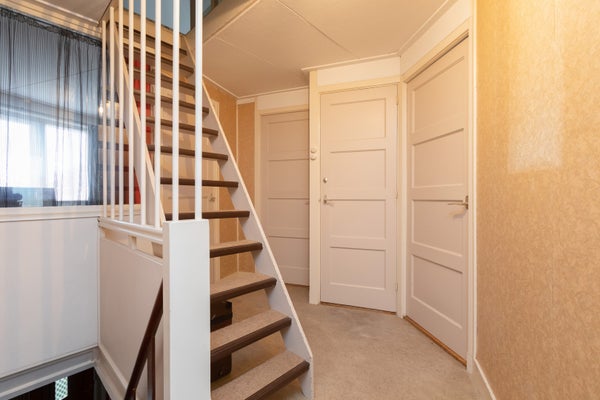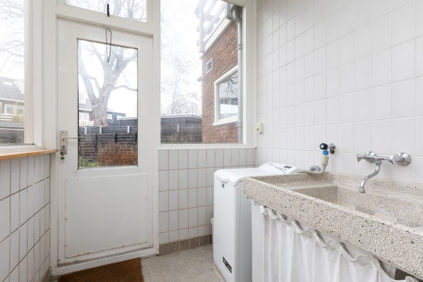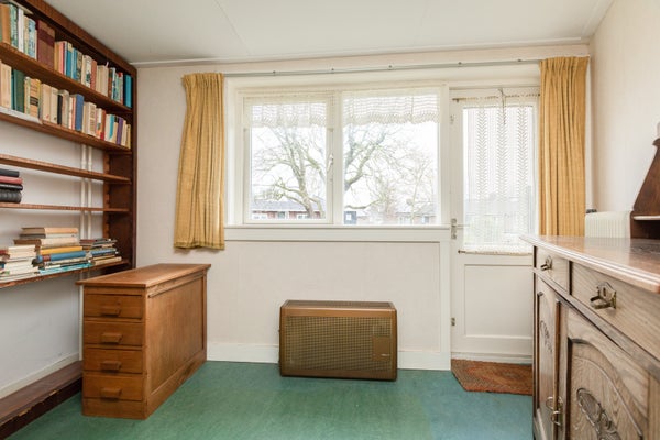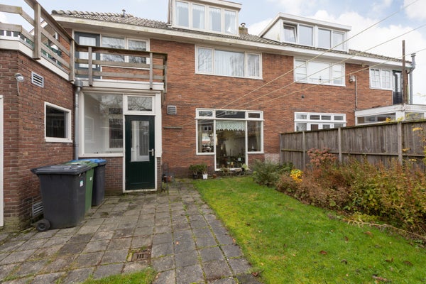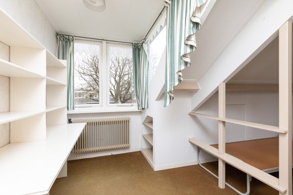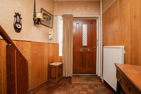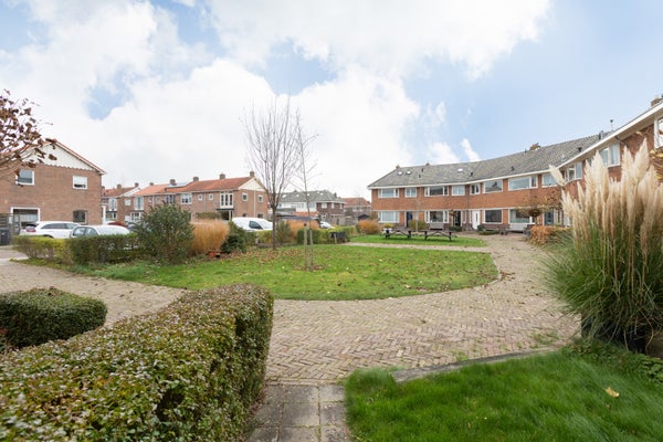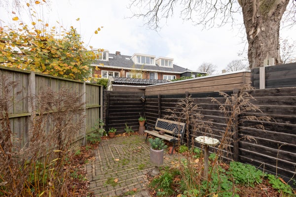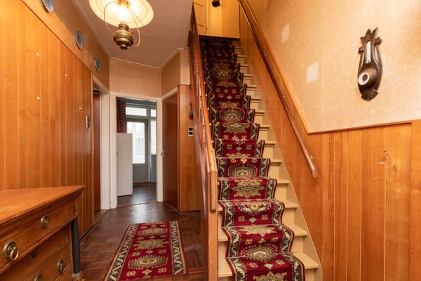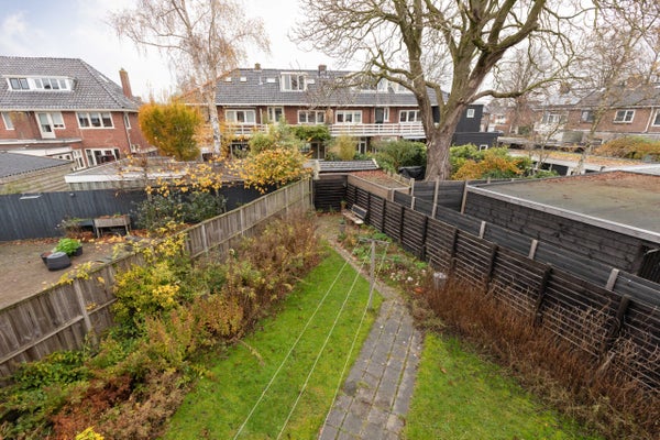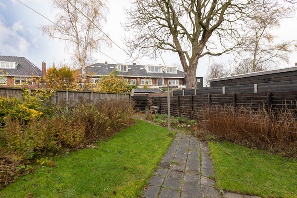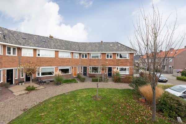 Deze klassieke jaren '30 tussenwoning biedt verrassend veel leefruimte en beschikt over een grote achtertuin. Gelegen tegenover een plantsoen en nabij het centrum en treinstation, maakt de woning deel uit van een U-vormig complex uit 1939. Met een bescheiden breedte van 5.50 m aan de voorzijde en 8.50 m aan de achterzijde, heeft het een speelse indeling.