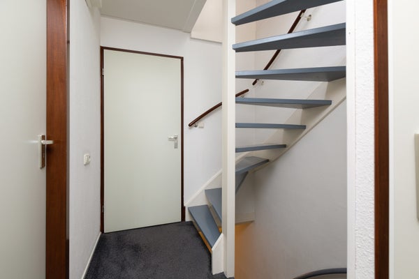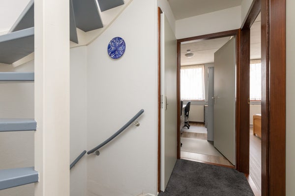 De begane grond bestaat uit een entree met hal, een woonkamer en een moderne keuken, en een bijkeuken met wasmachineaansluiting. De garage van ca. 8.50x2.80m is bereikbaar via de bijkeuken. Op de eerste verdieping zijn drie slaapkamers en een moderne badkamer met ligbad en douchehoek. De tweede verdieping biedt nog een grote slaapkamer met bergruimte.