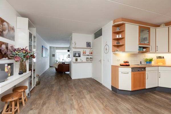 In deze ruime 2/1-kapwoning uit 1997, die in 2015 met vier meter is uitgebouwd tot een tuinkamer, geniet je van extra leefruimte op de begane grond met een totale oppervlakte van ongeveer 68m². De garage van ca. 21m² wordt nu gebruikt als atelier en biedt een aparte ingang. Het huis heeft 13 zonnepanelen en energielabel A. De kavel van 394m² biedt parkeermogelijkheden voor de deur en een ruime, vrij gelegen achtertuin op het westen, ideaal voor zon of schaduw.