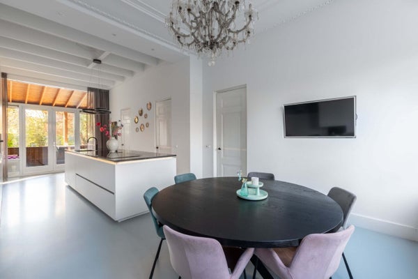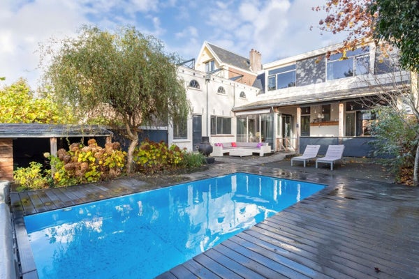 Deze karakteristieke vrijstaande stadsvilla uit 1903, gelegen in een van de mooiste straten van Sneek, biedt een diepe tuin van ca. 40m met zwembad en parkeerruimte voor meerdere auto's op eigen terrein. Met een kaveloppervlak van 1030m2 en een woonoppervlak van ca. 244m2, is de villa smaakvol gerenoveerd met behoud van authentieke details. De woning heeft een moderne leefkeuken, een riante living en een werkkamer op de begane grond, en vier slaapkamers op de eerste verdieping. Het energielabel A is te danken aan isolatie, 19 zonnepanelen en een zonneboiler. De tuin biedt veel privacy en ruimte voor buitenactiviteiten, terwijl het stadscentrum, scholen en het station op loopafstand zijn.