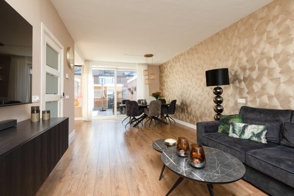 - De tussenwoning heeft een woonoppervlakte van 108 m² en beschikt over 6 kamers, waarvan 5 slaapkamers;