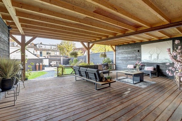 - De tussenwoning heeft een woonoppervlakte van 135 m² en beschikt over 5 kamers, waarvan 4 slaapkamers;