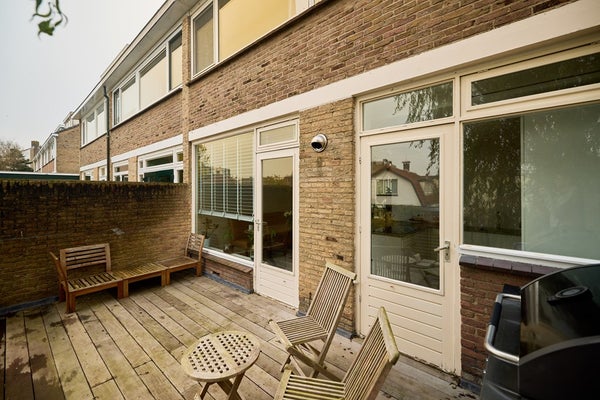 - Ruim houten dakterras met trap naar de achtertuin.