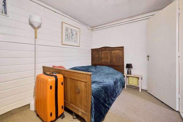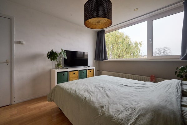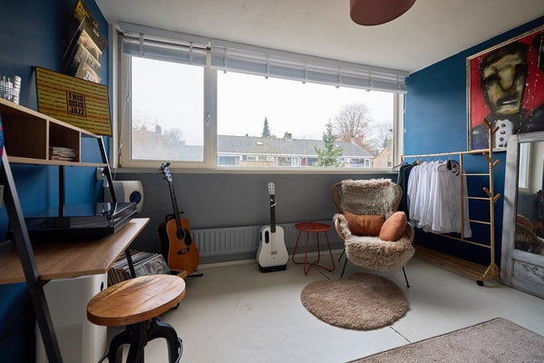 De eerste verdieping biedt twee ruime slaapkamers, beide met grote ramen die zorgen voor veel daglicht. De kamer aan de achterzijde beschikt over een vaste kast en is ideaal als hoofdslaapkamer. De slaapkamer aan de voorzijde is eveneens ruim en wordt nu gebruikt als werk- en muziekkamer, maar kan ook perfect worden ingericht als kinder- of logeerkamer. De badkamer is opvallend licht en royaal van formaat. Je vindt hier een hoekdouche, bubbelbad, wastafel en een groot raam voor natuurlijke ventilatie. Verder is er op de overloop een apart tweede toilet, en een praktische wasruimte met aansluitingen voor wasmachine en droger.Kortom: een complete en comfortabele verdieping, klaar voor dagelijks gemak.