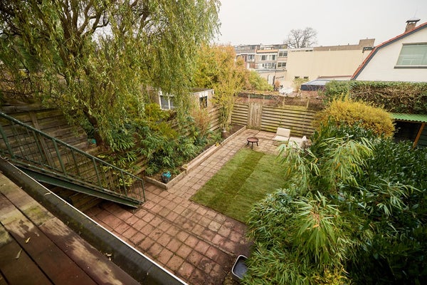 - Ruim dakterras op de eerste verdieping met directe trap naar de tuin.