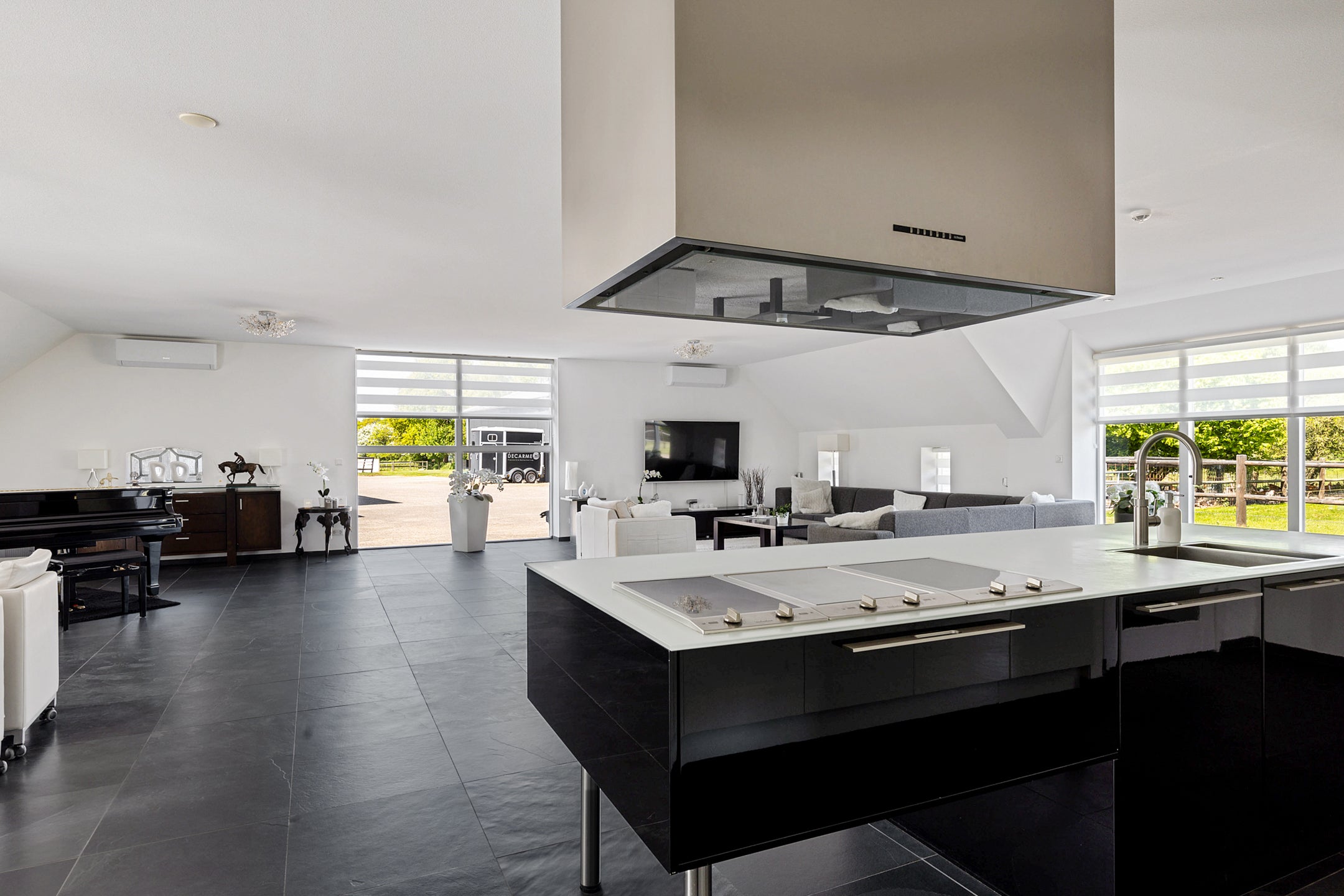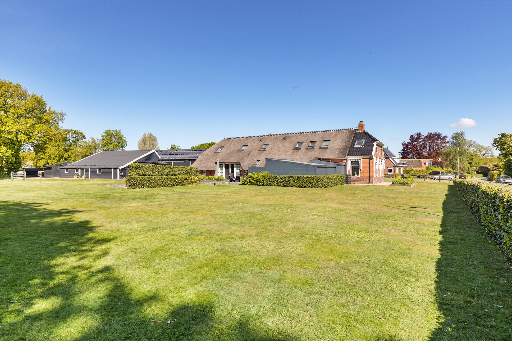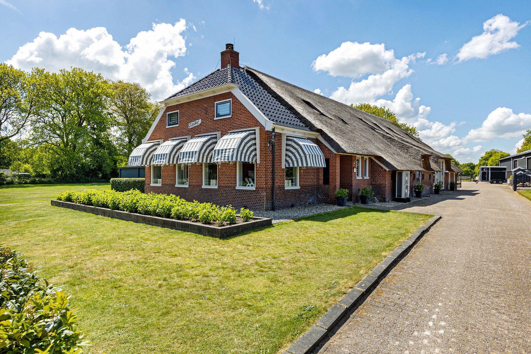 Deze woonboerderij in Onnen, een rustig dorp op fietsafstand van Haren en Groningen, is met zorg gerenoveerd en dateert uit 1870. Met een woonoppervlakte van 375 m² en een totale perceeloppervlakte van 35.145 m², biedt het pand ruimte voor zowel mensen als dieren. Het oude voorhuis en de nieuw gerealiseerde woning in de stal kunnen afzonderlijk worden bewoond, perfect voor generatiebewoning of een B&B. De woning heeft vijf slaapkamers, drie badkamers, een werkkamer en verschillende kwaliteitsvoorzieningen zoals vloerverwarming en zonnepanelen. Buiten bevinden zich een grote tuin en professionele paardenfaciliteiten, waaronder stallen en een binnenbak. Dit maakt het ideaal voor paardenliefhebbers. De energiewaarde van A++++, en een prachtig natuurlandschap om het huis heen, verhogen het wooncomfort.