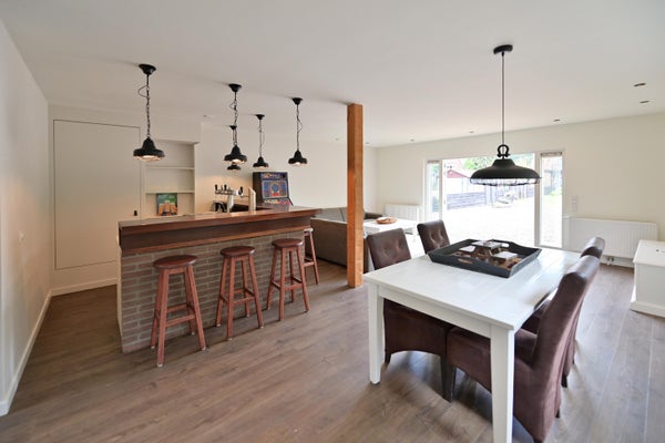 Deze stijlvol gerenoveerde twee-onder-een-kapwoning is gelegen op een prachtig perceel van 870 m², aan de rand van de bossen van Soest. Met een woonoppervlakte van 163 m² biedt deze woning veel comfort en ruimte, inclusief een multifunctioneel bijgebouw van 56 m² en een royale garage van 28 m². De indeling omvat een sfeervolle woonkamer met openslaande deuren naar de diepe achtertuin, een moderne keuken, twee slaapkamers en een lichte open zolderverdieping. Het bijgebouw, momenteel ingericht als mancave, heeft eigen voorzieningen en biedt diverse mogelijkheden. Deze woning ligt in een rustige, kindvriendelijke buurt nabij scholen, sportfaciliteiten en uitstekende verbindingen. Een unieke plek voor natuurliefhebbers en sportievelingen.