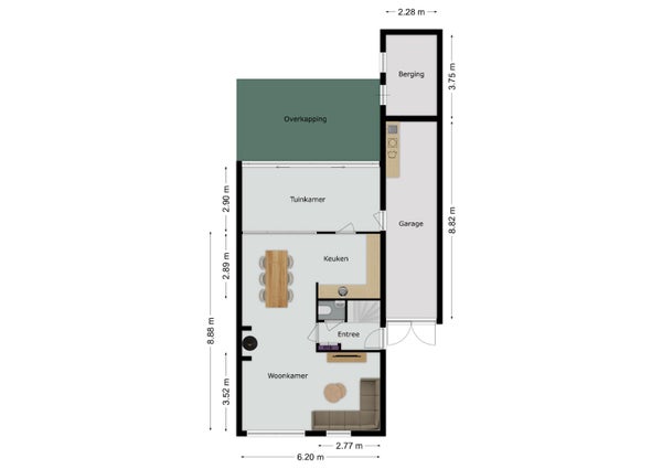 Aanwezig (85 m², gelegen op het zuidwesten)