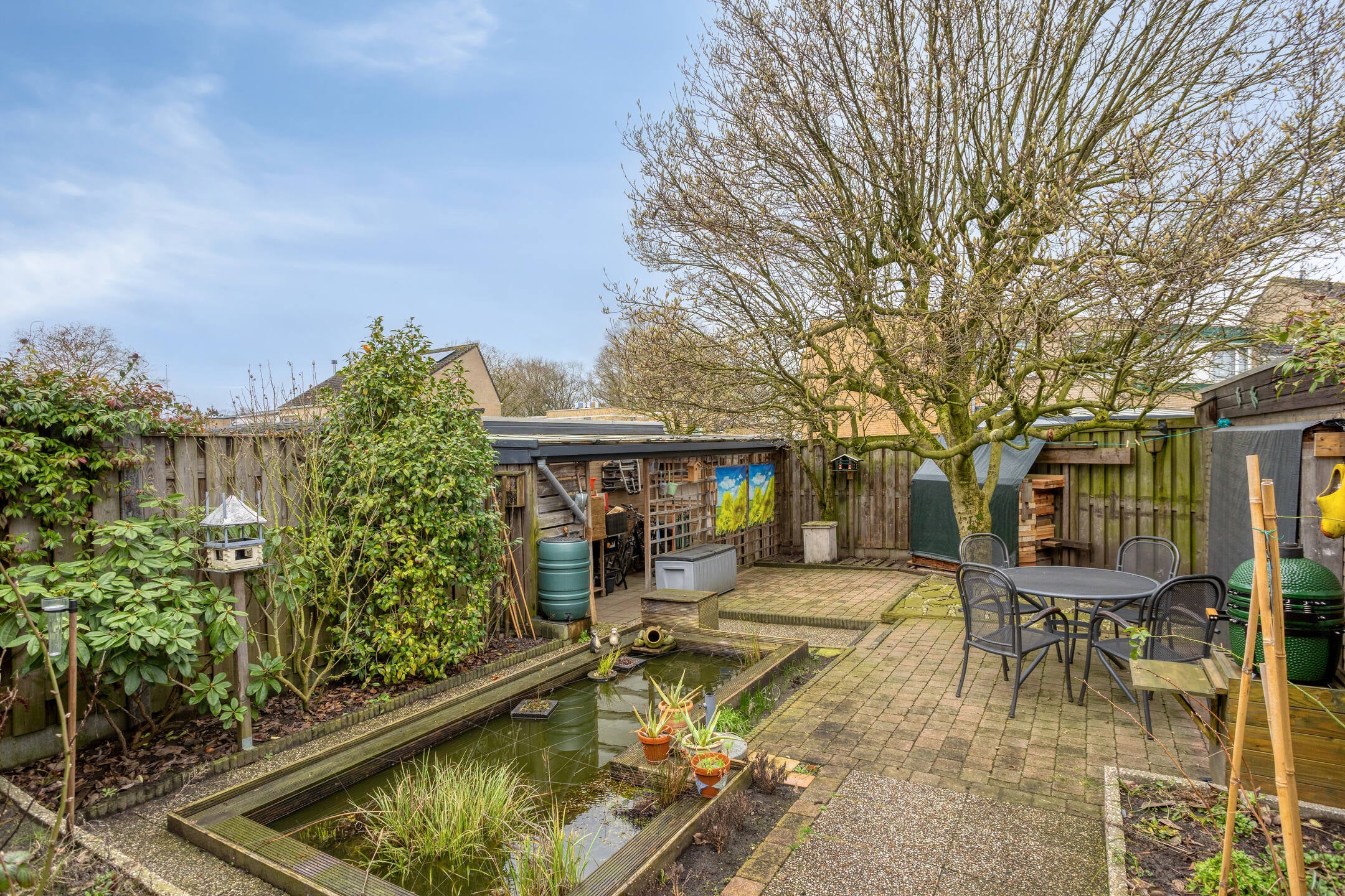 Deze ruime en uitgebouwde tussenwoning biedt maar liefst vijf slaapkamers, een grote garage en een mooie diepe tuin. De woning is gelegen op een perceel van 199 m², met een breedte van meer dan 10 meter aan de achterzijde, ideaal voor een dubbele garage. De sfeervolle begane grond heeft een lichte eiken houten vloer, een gezellige woonkamer met houtkachel en een woonkeuken met granieten aanrechtblad en moderne apparatuur. Op de eerste verdieping bevinden zich drie ruime slaapkamers, een recent gerenoveerde badkamer met inloopdouche en diverse inbouwkasten. De tweede verdieping, toegankelijk via een vaste trap, biedt nog eens twee slaapkamers, waarvan één als saunaruimte is ingericht. De achtertuin met volwassen bomen en een overkapping bij de garage is perfect voor ontspanning. Gelegen in Someren, een groene omgeving met uitstekende voorzieningen.