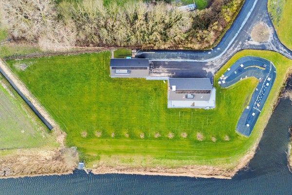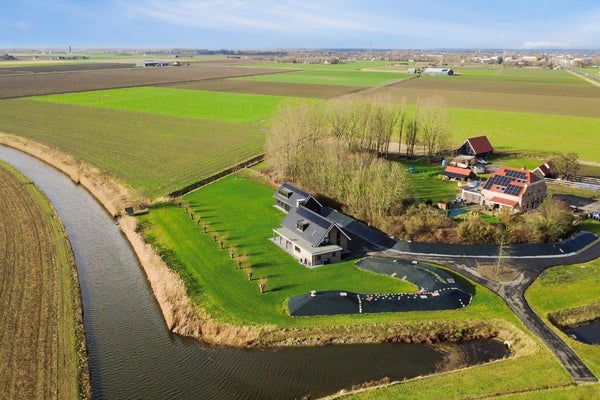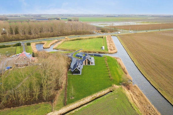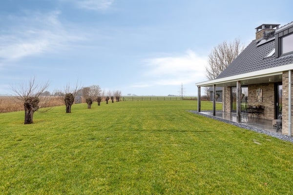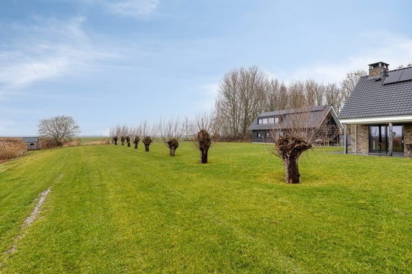 Het perceel strekt zich diep uit achter de bebouwing en omvat erf, tuin, grote waterpartij en weiland. De lange oprit en vrije ligging rondom creëren een landgoedachtige beleving met maximale rust en privacy.