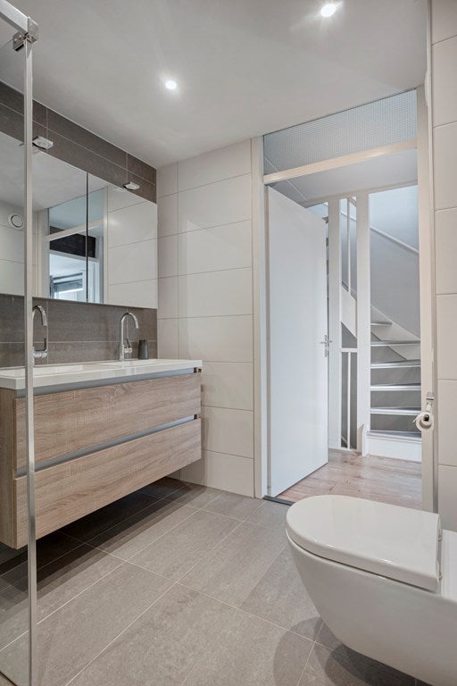 De eerste verdieping beschikt over drie slaapkamers en een moderne badkamer. De badkamer is in 2017 vernieuwd en uitgevoerd met luxe voorzieningen, waaronder een dubbele wastafel, een inloop(regen)douche, modern sanitair en strak tegelwerk.