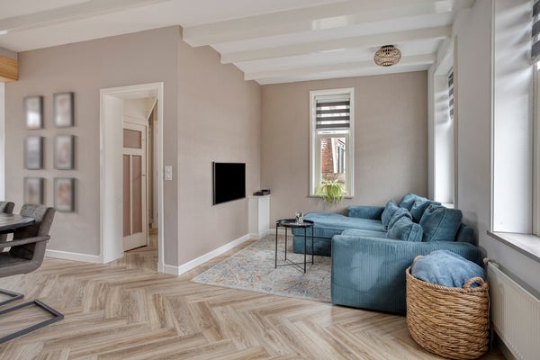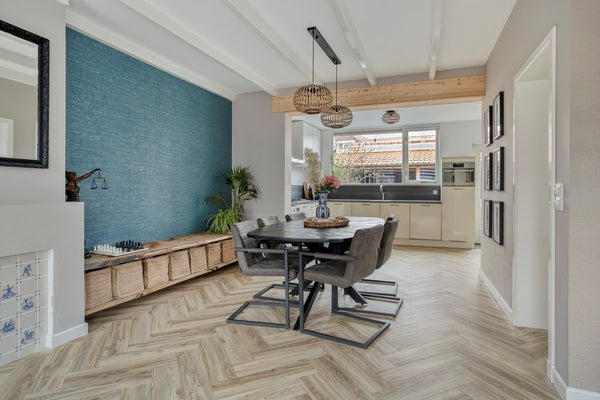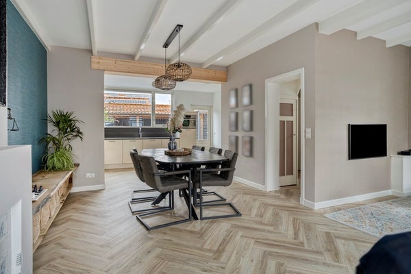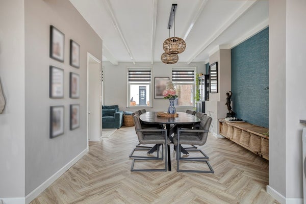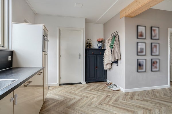 Via de entree kom je in de hal met trapopgang en toegang tot de woonkamer. De woonkamer is heerlijk licht en strak afgewerkt. In 2024/2025 is de vloer doorgetrokken tussen woonkamer en keuken en voorzien van vloerverwarming en een moderne PVC-vloer. Dat zorgt niet alleen voor comfort, maar ook voor een rustige, eigentijdse uitstraling.