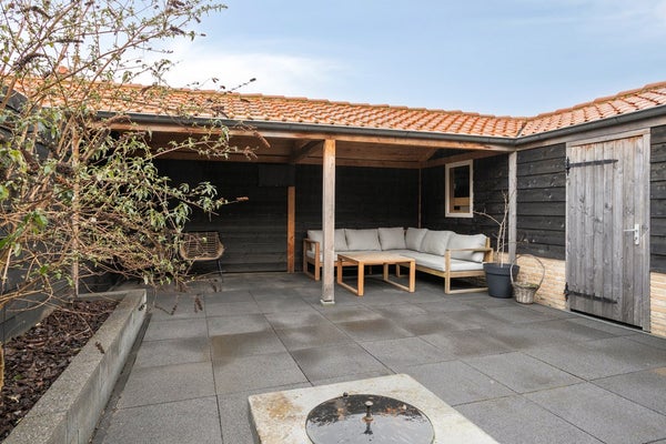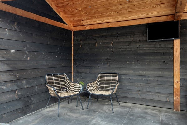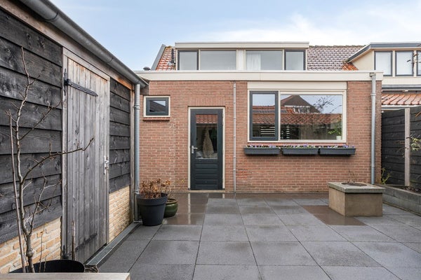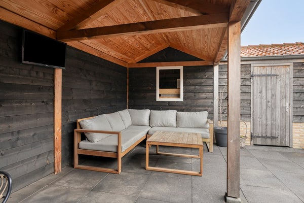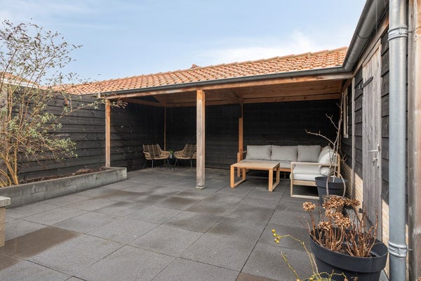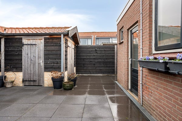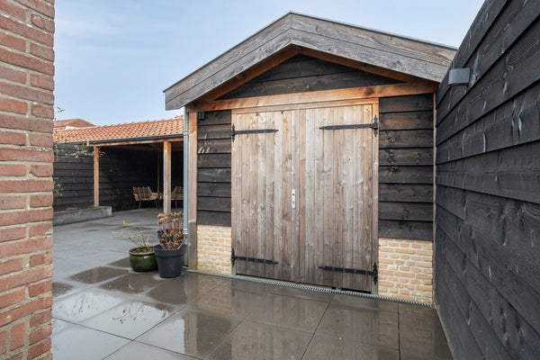 De achtertuin is grotendeels bestraat en onderhoudsvriendelijk ingericht. In 2022 zijn de schuur, overkapping (met verlichting) en schuttingen gebouwd. Onder de royale overkapping kun je het hele jaar door beschut zitten – een verlengstuk van je woonkamer.