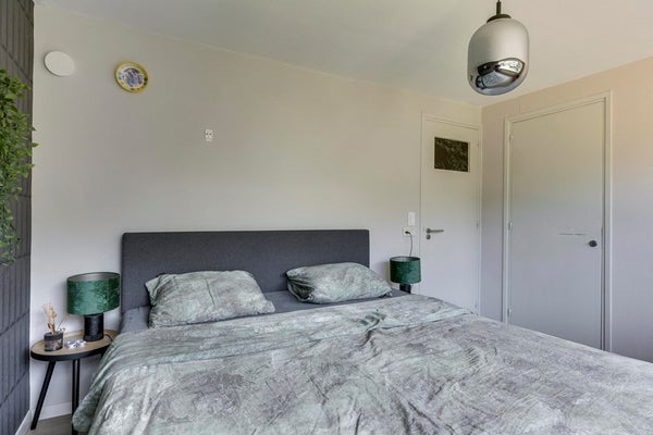 De slaapkamers zijn alle 4 keurig afgewerkt met PVC-vloer, deels behang/deels stucwerk wanden en beschikken allemaal over een praktische inbouwkast en grote raampartijen.