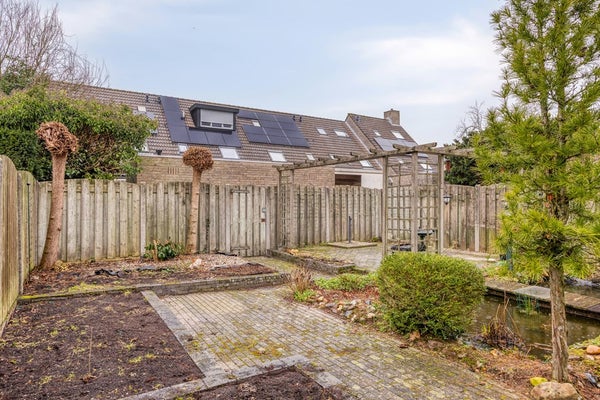 De sfeervol aangelegde tuin is voorzien van meerdere terrassen, borders met vaste beplanting, vijverpartij, tuinverlichting en een pergola. Direct aan de woning bevindt zich een overdekt terras, uitgevoerd met lichtdoorlatende platen, inbouwspotjes en een terrasverwarmer.