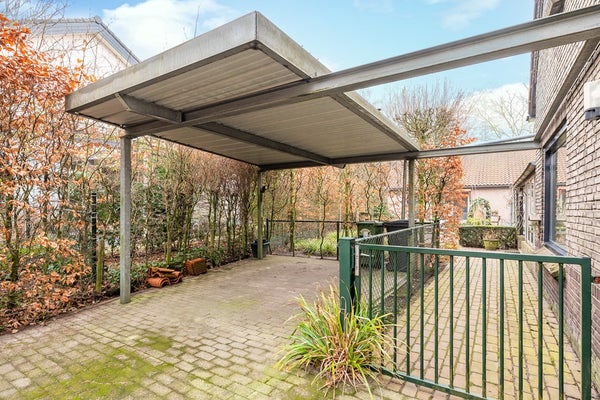 Naast de woning ligt een ruime oprit met plaats voor meerdere auto’s. Tevens is er een carport aanwezig met aansluitend de achterom naar de binnentuin.
