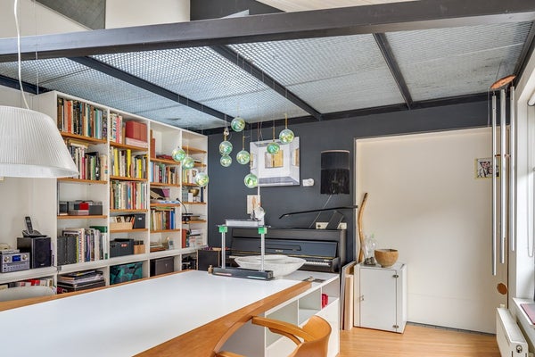 U komt hier in een indrukwekkend grote woonkamer met een warme bamboe vloer, een strak plafond met inbouwspots en openslaande deuren (v.v. plissé hordeur) naar de achtertuin. De vele raampartijen (waaronder de bovenlichten) zorgen voor een prachtige lichtinval en een open, ruimtelijk gevoel. Dit is een heerlijke leefruimte waar u moeiteloos meerdere zit- of leefhoeken kunt creëren en optimaal geniet van het contact met buiten. Of wat dacht u van een atelier of werkplek?
