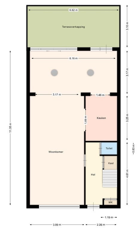 - Aanwezig (102 m², gelegen op het zuidoosten)