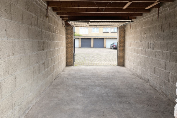 De stenen garage (6.2m bij 3.1m) is voorzien van elektra, loopdeur naar de tuin en een stalen kanteldeur met geïntegreerde loopdeur aan de achterzijde. Ideaal als bergruimte, klusplek of voor het stallen van fietsen of een auto.