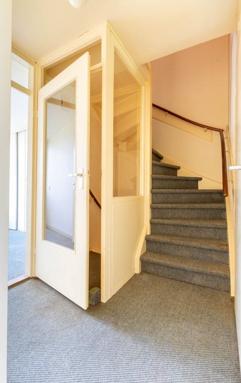 De tweede verdieping bereikt u via een vaste trap en biedt verrassend veel extra ruimte. U komt boven op de voorzolder, afgewerkt met tapijt, gestucte wanden en een lamellenplafond.