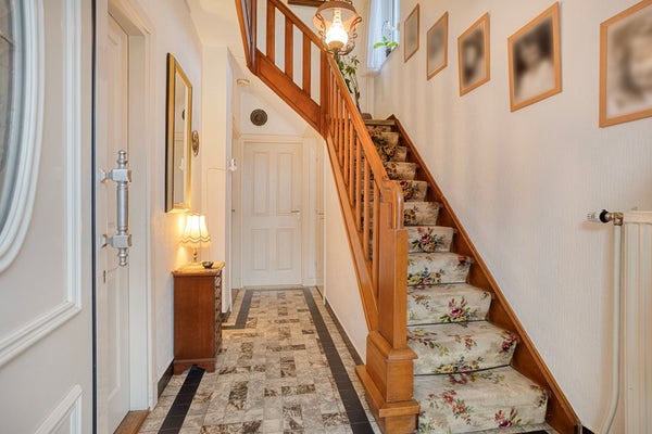 Entree met vernieuwde meterkast, opgaande trap, toegang tot de woonkamer en toegang tot de keuken.