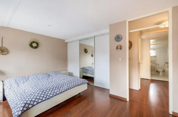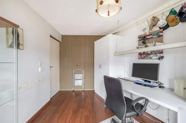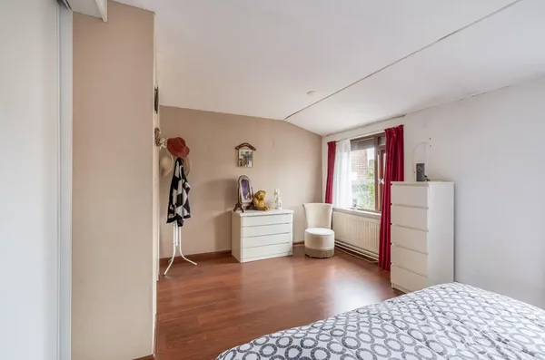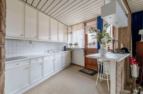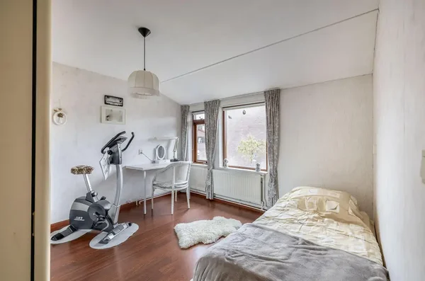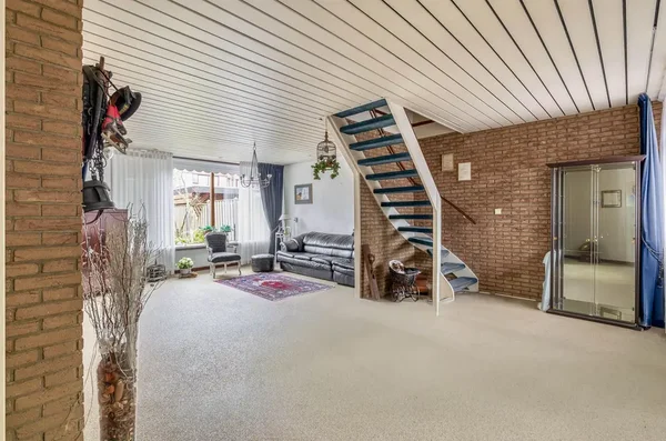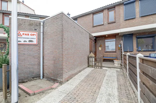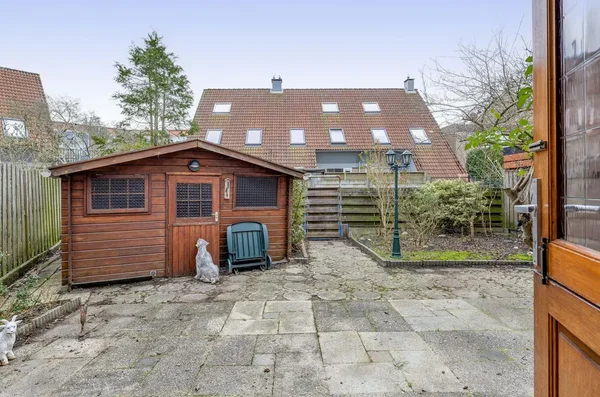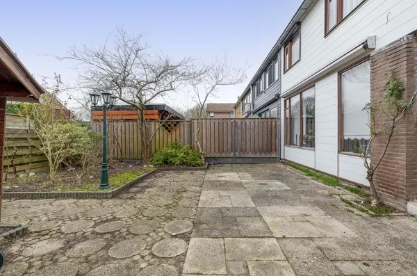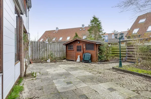 Deze eengezinswoning aan Kwikstaarthoek 34 biedt een ruime living met grote achterramen, die veel daglicht binnenlaten. De halfopen keuken grenst aan de woonkamer en heeft toegang tot de achtertuin met een berging. Op de eerste verdieping zijn er drie slaapkamers en een badkamer. De hoofdslaapkamer van circa 14,5 m² heeft een vaste kast en rolluiken. De tweede slaapkamer meet circa 11 m² en de derde slaapkamer is ongeveer 12,5 m². Alle slaapkamers zijn voorzien van daglicht door de grote ramen. De badkamer is volledig betegeld en uitgerust met een toilet en ligbad. De onderhoudsvriendelijke voortuin leidt naar een stenen berging, terwijl de achtertuin ruimte biedt met borders voor beplanting. De woning is gebouwd in 1980 en heeft een inhoud van 452 m³ en een woonoppervlakte van 116 m².