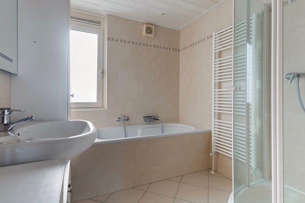 Op de eerste verdieping bevinden zich drie slaapkamers van verschillende afmetingen, waardoor de woning geschikt is voor gezinnen, thuiswerken of hobby’s. De badkamer is netjes en compleet uitgevoerd met ligbad, douche en wastafel. Alles functioneel en praktisch ingedeeld.