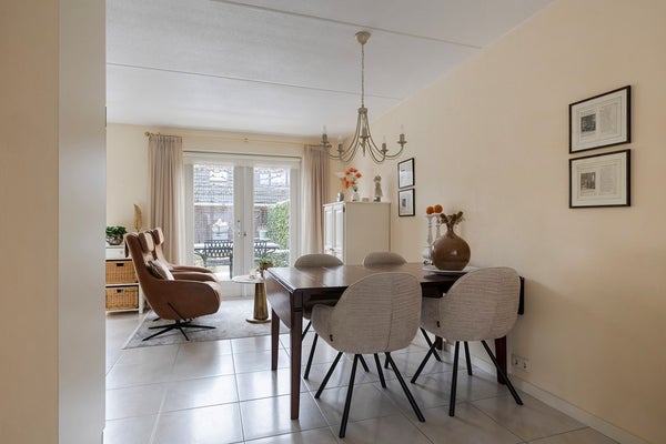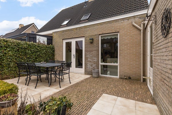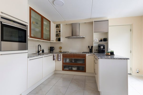 De keuken staat in open verbinding met de woonkamer en is praktisch ingericht in een hoekopstelling, voorzien van diverse inbouwapparatuur en veel werk- en kastruimte. Zowel in de woonkamer, hal als keuken geniet je van comfortabele vloerverwarming. De openslaande deuren naar het terras zorgen op zomerse dagen voor een heerlijk binnen/buitengevoel, waarbij wonen en tuin naadloos in elkaar overlopen.