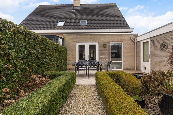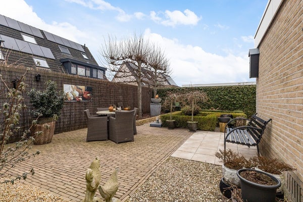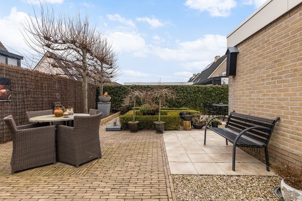 De woning beschikt over een ruime oprit met plek voor meerdere auto’s en een aangebouwde garage. De tuin is netjes aangelegd en biedt meerdere plekken om van de zon te genieten. Daarnaast is er een vrijstaande houten berging, ideaal voor het stallen van tuinmeubilair en tuingereedschap.