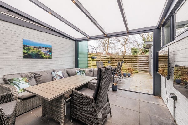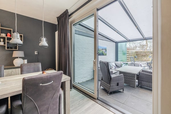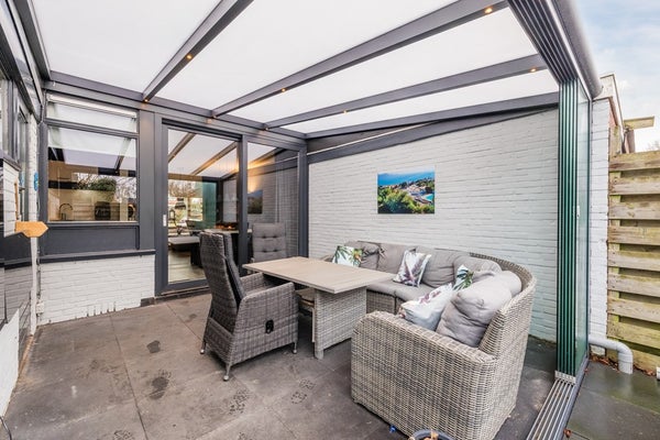 De kunststof schuifpui en aluminium overkapping zijn in 2022 geplaatst