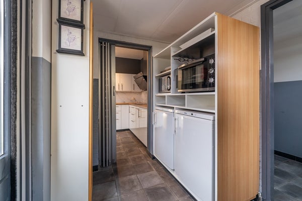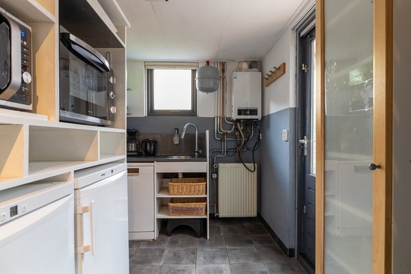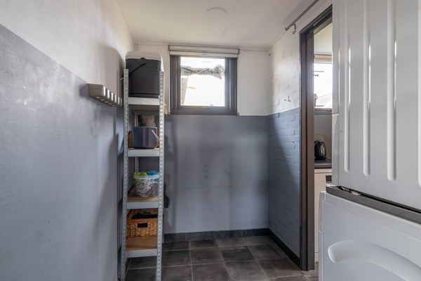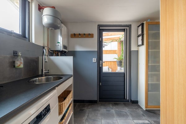 Via de entree betreedt u de hal met toilet, meterkast en trapopgang. De lichte woonkamer biedt volop leefruimte voor een gezellige zithoek en een royale eettafel. De keuken is uitgevoerd met een kunststof aanrechtblad en voorzien van een inductiekookplaat en inbouwkoelkast. In de praktische bijkeuken vindt u de koelkast en een losstaande vaatwasser, evenals extra bergruimte en de doorgang naar buiten.