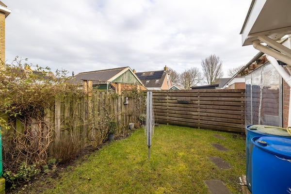 De tuin is gelegen op het noordoosten en beschikt over een fijne overkapping waar u al vroeg in het seizoen van het buitenleven kunt genieten. Daarnaast is er een vrijstaande houten berging voor extra opslag.