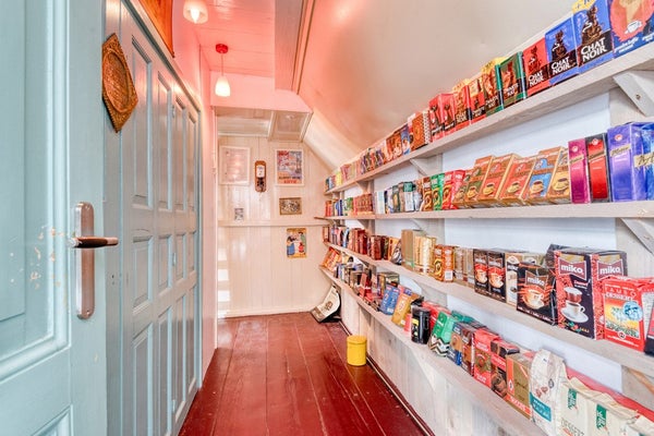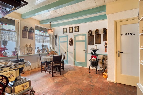 Vanuit de winkelruimte is er toegang tot de sfeervolle achterkamer. De achterkamer biedt toegang tot de bergkast en de keuken.