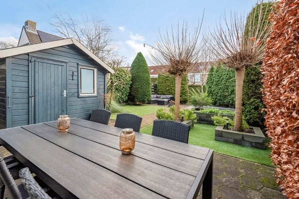 De achtertuin is de perfecte plek om te genieten van het buitenleven! De tuin is voorzien van sierbestrating, terras, gazon en tuinhuis met elektra. In de tuin ervaren jullie ruimte, rust en privacy! Terwijl de kinderen zorgeloos kunnen spelen, genieten jullie van de zonnestralen met een goed glas wijn. Nog een extra pluspunt: de tuin is gelegen op het zonnige Zuiden.
