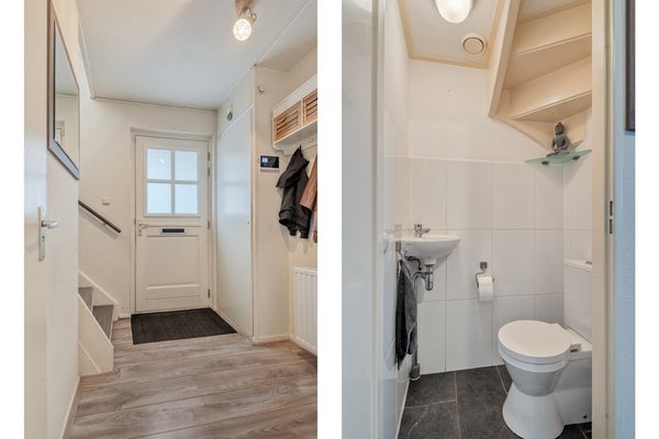 Jullie komen aan in deze geliefde woonwijk in Steenbergen-Noord, parkeren de auto of de camper op de riante oprit en lopen de woning binnen. De entree biedt toegang tot het betegelde toilet met fonteintje, meterkast, garderobe, woonkamer en eerste verdieping middels een vaste trapopgang.