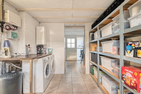 De hal biedt toegang tot de bijkeuken die beschikt over de omvormer t.b.v. de zonnepanelen, bergruimte, aansluiting voor de wasmachine en droger en toegang biedt tot de berging. Deze voormalige garage is multifunctioneel: je kunt deze uiteraard als garage gebruiken, maar hij leent zich ook uitstekend voor een thuiswerkplek, hobbyruimte of andere creatieve doeleinden.