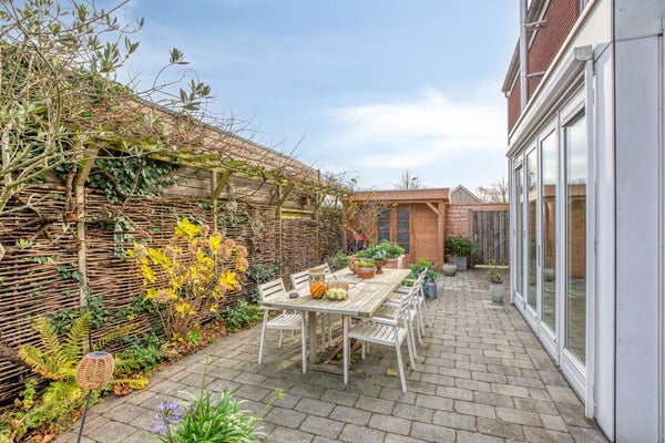 Of je nu neerstrijkt met een goed boek, de dag begint met een dampende kop koffie of gewoon wilt genieten van het buitenleven: deze achtertuin is daar simpelweg perfect voor. De tuin heeft alles in huis voor echte genieters: prachtige druivenranken (ideaal voor wie droomt van een eigen huiswijn ;)), een verzorgd gazon, gezellig terras, fraaie borders, een overkapping voor lange zomeravonden en een tuinhuis uit 2024 voor extra opbergruimte. Via de achterom is de tuin bovendien prettig bereikbaar.