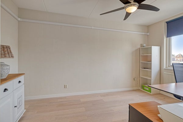 Slaapkamer 3 is afgewerkt met een laminaat vloer, gesauste wanden en een gesaust plafond. De slaapkamer is voorzien van een dakraam.