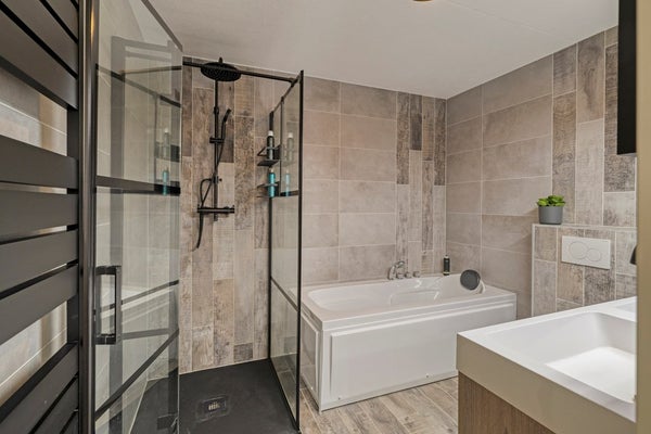 Me-Time! Ontsnap aan de dagelijkse drukt en kom tot rust in het heerlijke ligbad. De badkamer (2021) is afgewerkt met een betegelde vloer, betegelde wanden en een spuitwerk plafond. De badkamer is voorzien van een riante douche, ligbad, dubbel wastafelmeubel en 2e toilet.