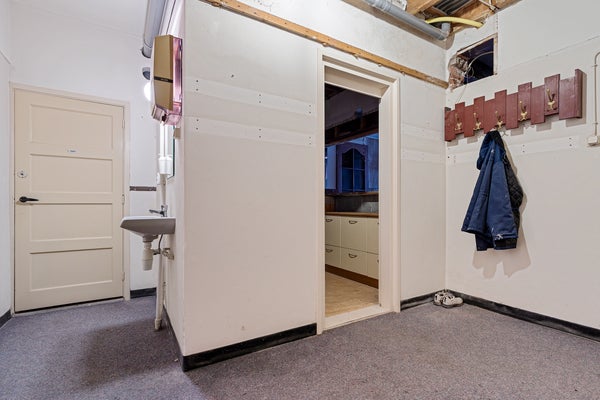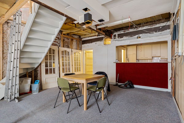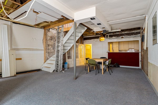 De indeling begint op de begane grond met een kantoor- of winkelruimte van ongeveer 66 m², inclusief een keuken, toilet, en meterkast. De eerste verdieping biedt ook een woonruimte van circa 66 m², met voorzieningen voor een keuken, badkamer, en toilet. De tweede verdieping herbergt twee slaapkamers en een overloop. Het pand is deels gerenoveerd, met nieuwe elektra, leidingen, en een cv-ketel (2024). De afwerking kan naar eigen wens plaatsvinden.