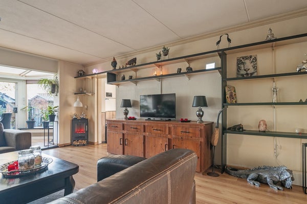 Daarnaast is aan de achterzijde een serre geplaatst, waardoor er nóg een extra eet-/zitgedeelte is ontstaan met een prachtig uitzicht op de diepe achtertuin. Hier geniet je elk seizoen van het buitengevoel, maar dan met het comfort van binnen.